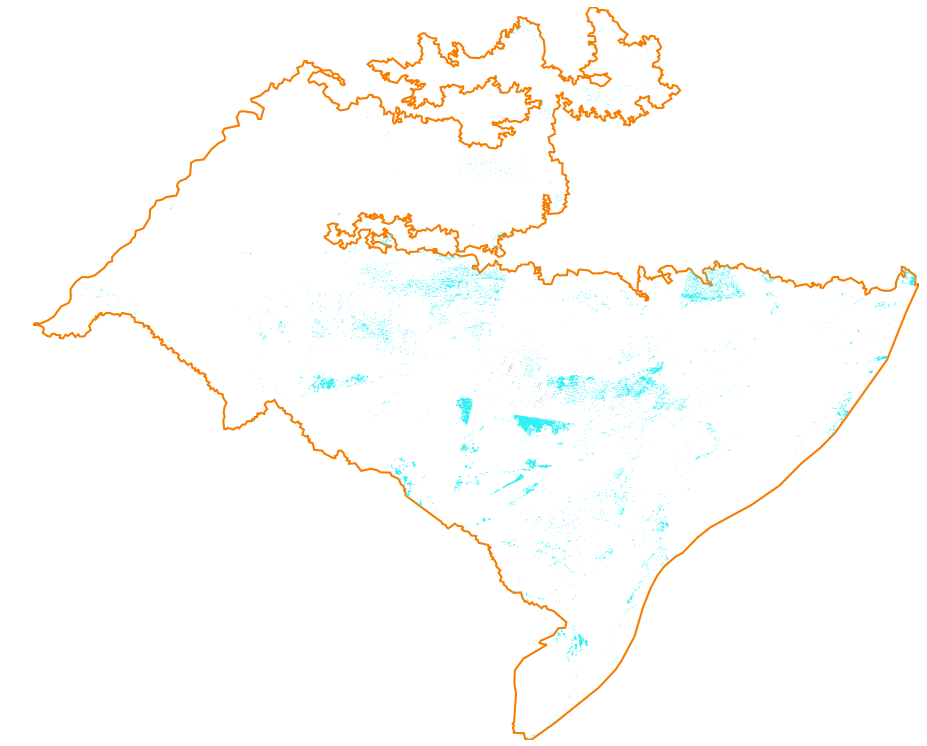 Máscara de áreas não observadas do PRODES Pampa. O PRODES considera como desmatamento a supressão da vegetação nativa, independentemente da futura utilização destas áreas. Os limites dos biomas brasileiros foram alterados conforme publicação do IBGE de 30/10/2019. Este conjunto de dados foi ajustado para o novo recorte. https://agenciadenoticias.ibge.gov.br/agencia-sala-de-imprensa/2013-agencia-de-noticias/releases/25798-ibge-lanca-mapa-inedito-de-biomas-e-sistema-costeiro-marinho O produto: Este recurso contém polígonos que identificam áreas recobertas por nuvens e sombras de nuvem e de relevo quando houve a captação da imagem de satélite utilizada no mapeamento do bioma Pampa. Foi construído a partir da interpretação visual de imagens Landsat-8/OLI na composição R(5)G(6)B(4) - com resolução de 30m - e em escala de trabalho de 1:75.000. A área mínima mapeada é de um hectare (1 ha). O produto é compatível com a escala final de 1:250.000. A área total do bioma Pampa é de 178.767 km². Descrição dos atributos do dado composto por: nome do atributo, tipo do dado e descrição -------------------------------------------------------------------------------------------------------------------------- uuid - texto - identificador único universal de cada feição (RFC 4122, ISO/IEC 9834-8:2005) uid - número - identificador para rastreabilidade da feição na origem/produção do dado geom - feição composta por um ou mais polígonos - geometria obtida por interpretação visual de imagem de satélite. source - texto - nome da origem do poligono (amazonia, cerrado, caatinga, mata_atlantica, pampa, pantanal), caso o polígono tenha sido incorporado de outro projeto, por exemplo, devido à alteração do mapa de biomas ou ainda às zonas da amazônia legal no cerrado e pantanal path_row - texto - código da cena formado por linha/coluna da grade de passagem do satélite Landsat satellite - texto - nome do satélite. Em geral será o landsat mas em alguns casos, outro satélites podem ser utilizados. sensor - texto - nome do sensor que obteve a imagem. state - texto - nome do estado, unidade da federação, quando aplicável. main_class - texto - nome da classe principal atribuída à feição class_name - texto - nome da classe específica atribuída à feição def_cloud - número - indica se havia nuvem em ano anterior sobre a feição. (Não se aplica ao bioma Pampa) julian_day - número - dia juliano (Não se aplica ao bioma Pampa) image_date - data - data da cena usada para obter a feição year - número - ano da feição, usado para facilitar as consultas ao banco de dados area_km - número - área calculada para a feição em km² scene_id - número - identificador da cena no banco de dados, usado para consultas (Não se aplica ao bioma Pampa) publish_year - data - usado para permitir a publicação do dado no GeoServer com dimensão temporal (quando aplicável) Esta lista de atributos é padronizada com base no dado de desmatamento, classe principal do PRODES. Para as demais classes o preenchimento ocorre apenas quando aplicável. Sobre UUID -------------------------------------------------------------------------------------------------------------------------- https://www.postgresql.org/docs/13/datatype-uuid.html https://www.rfc-editor.org/rfc/rfc4122